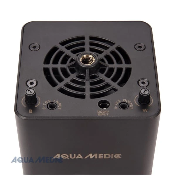 LED Cluster Chip bestehend aus 24 einzelnen LED-Elementen mit ausgewogenem Lichtspektrum. Mit Hohe Energiedichte speziell abgestimmt für starkes Korallenwachstum (PAR=1.250 µmol m-2s-1). Die Farbe und Lichtmenge ist über 2 Kanäle manuell einstellbar. Der integrierte 0-10 Volt Anschluss ist zur Verwendung von externen Steuergeräten gedacht. Die kompakte Bauweise ermöglicht eine ideale Beleuchtung von Nano-Aquarien sowie die Ausleuchtung dunkler Randbereiche bei größeren Aquarien. Der Laufruhige interne Lüfter ist für zuverlässige Kühlung des High Power LED Chips konzipiert. Ein flexibler Schwanenhals sorgt für einen stabilen Halt und einfache Ausrichtung sowie Stahlseilaufhängung zur Deckenmontage (im Lieferumfang enthalten).