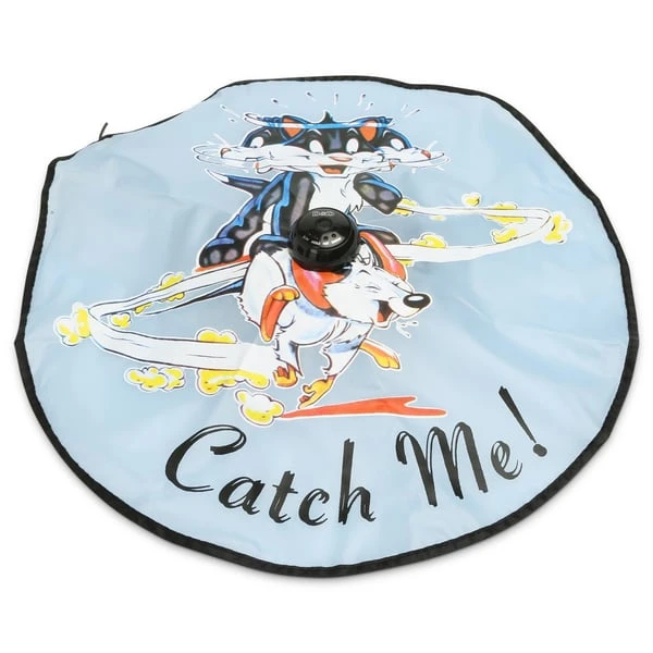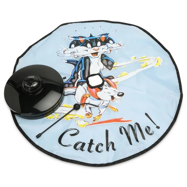 Mit der D&D Undercover Mouse ist stundelanger Spielspaß garantiert. Das batteriebetriebene Katzenspielzeug mit hochwertigem und witzigem Aufdruck im Comicstil wird von einem motorgesteuertes Gummistäbchen in Bewegung gesetzt. Nach dem Einschalten bewegt sich das Gummistäbchen unter der Decke, dabei ist es Zufall, in welche Richtung es sich als nächstes bewegt. Die schnellen Bewegungen in verschiedene Richtungen aktvieren dabei den Spiel- und Jagdinstinkt. Für die Geschwindigkeit gibt es vier verschiedene Einstellungen: langsam, mittel, schnell und Zufall. Zur besseren Kontrolle der verschiedenen Einstellungen sind kleine LED Lichter integriert. Für den Betrieb werden 3x AA Batterien benötigt, diese sind nicht im Lieferumfang enthalten. Bitte verwenden Sie dieses Spielzeug bitte nur unter Aufsicht, lassen Sie Ihre Katze nicht alleine damit spielen.