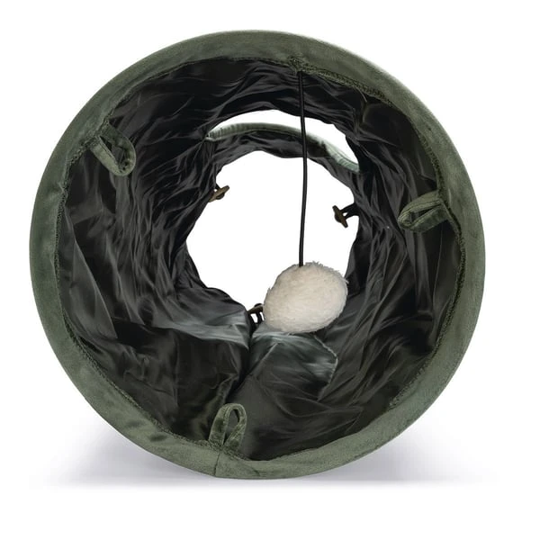 Der Designed by Lotte Katzentunnel Cylla ist das ideale Spielzeug für deine Katze. In diesem grünen Tunnel kann sie nach Herzenslust rasen, sich verstecken und spielen. Der Tunnel verfügt über eine Öffnung vorne und hinten, sodass deine Fellnase mühelos hinein- und herausspringen kann. Zusätzlich gibt es ein Loch in der Mitte des Tunnels, durch das deine Katze entkommen kann, wenn sie möchte.