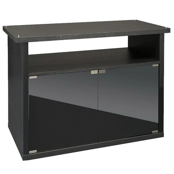 Neben dem Terrarium ist eine praktische Abdeckung Teil des Gesamtpakets, die Raum für mehrere Leuchtstoff- und Glühlampen mit bis zu 26 W bietet. Abgerundet wird alles von einem schicken, schwarzen Unterschrank, der mit Glastür und Magnetverschlüssen ebenso punktet wie mit sicherem Stand und ausreichend Stauraum.