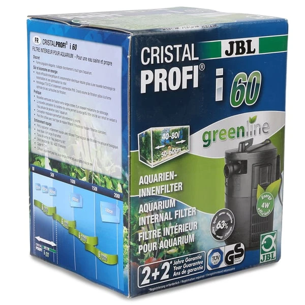 - Mit Ihrer eleganten Eckform passen sich JBL CristalProfi Innenfilter unauffällig in jedes Aquarium ein.