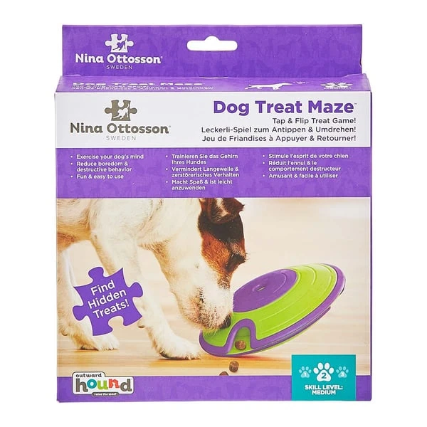 Das Treat Maze von Nina Ottosson by Outward Hound ist ein Spiel mit Level 2, das sich perfekt für Haustierbesitzer eignet, die nach einem interessanten Spielzeug zur Selbstbeschäftigung für ihren Liebling suchen, um zerstörerisches Verhalten und Langeweile zu reduzieren. Ideal für Hunde, die Spiele mit Level 1 gemeistert haben und bereit für eine zusätzliche Herausforderung sind. Dieses farbenfrohe Hunde-Denkspielzeug ist einfach mit Leckerlis zu befüllen und kann geschüttelt werden, um den Duft freizusetzen, falls dein Hund ihn noch nicht bemerkt hat. Der Treat Maze hat keine zusätzlichen Teile, sodass keine Unordnung entsteht und das Spielzeug einfach mit Seife und Spülmittel zu reinigen ist.