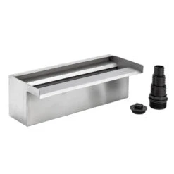 Edler und anmutiger Wasserfall in verschiedenen Breiten. Individuelle Wasserfälle lassen sich jetzt ganz einfach gestalten, denn die robuste und hochwertige Verarbeitung aus Edelstahl ermöglicht sowohl die Integration in eine Mauer als auch die Verschraubung an eine Wand. Der Auslass wurde um 1,5 cm verlängert – für einen noch einfacheren Einbau in eine Wand. Im Lieferumfang enthalten sind Gewindeöffnungen, Schlauchtüllen und Stopfen. Für einen klaren und ebenmäßigen Wasserfall sorgt die passende Pumpe: Bei einer Wasserfallhöhe von 0,8 m – 1,0 m = AquaMax Eco 4000-6000 / 0,4 m – 0,6 m = AquaMax 3500-4000 / 0,2 m = AquaMax Eco 3500-4000. Anmutige Wasserfälle aus robustem und rostfreiem Edelstahl. Elegantes, gleichmäßiges Wasserbild bis 1 m Höhe . Mühelose Nachrüstung von zusätzlicher Wasserfallbeleuchtung für stimmungsvolle Lichtakzente.