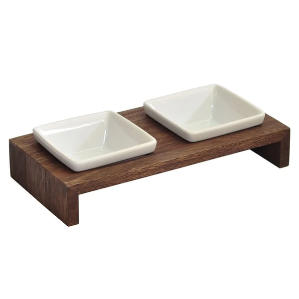 Die Kombination aus Holz & Keramik macht auch optisch einen tollen Eindruck. Darüber hinaus können sie die Replus-Näpfe ganz bequem in der Spülmaschine reinigen lassen. Das Holzgestell, das mit Pu-Lack versiegelt und somit wasserabweisend ist, sollte hin und wieder mit einem Lappen gereinigt werden. Wahlweise erhalten Sie die Replus Futterstation Meshidai Doppelnapf Walnuss in den Varianten XS, S, M und L.