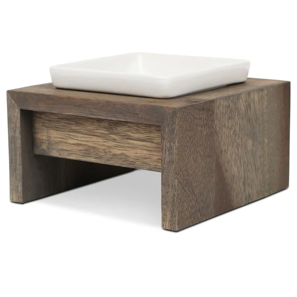 Die Replus Futterstation Meshidai Einzelnapf Schiefer wird aus robustem Holz gefertigt. In Kombination mit dem Porzellan wirkt die Futterstation sehr hochwertig und passt sich einer modernen Inneneinrichtung nahtlos an. Der wasserabweisende Holzkörper ist rundum mit PU-Lack versiegelt. Dennoch sollten Sie das Holz zur Vorsicht gelegentlich abwaschen, damit es schön und formstabil bleibt. Die vier kleinen Silikon-Stopper auf der Unterseite des Napfes verhindern ein Verrutschen.
