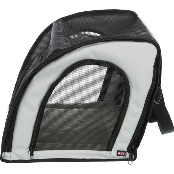 Der Autositz von Trixie kann problemlos auf dem Vorder- oder Rücksitz genutzt werden. Er lässt sich bequem von vorne oder seitlich öffnen und schließen. Für die notwendige Stabilität sorgen die Befestigungsgurte, die zur Fixierung des Sitzes am Fahrzeug dienen. Zusätzlich steht eine Gurtdurchführung zum Anschnallen des Hundes zur Verfügung. Das herausnehmbare Kissen mit Schaumstoff-Füllung kann per Handwasche gereinigt werden. Wird der Autositz mal nicht benötigt, lässt er sich einfach zusammenklappen und platzsparend verstauen