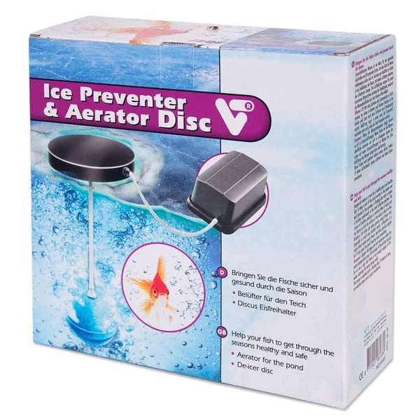 Um den Teich in der Winterperiode stellenweise eisfrei zu halten ist ein Treibkörper die wirksamste Lösung. Der Velda Discus ist ein Treibkörper mit einem Luftblasenstrom und verhindert Eisbildung in der Umgebung.