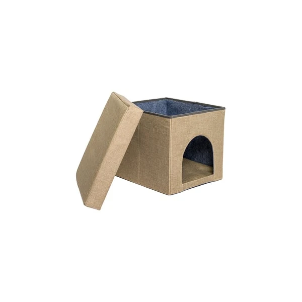 Der pflegeleichte Polyester trocknet schnell und kann außerdem Wärme gut speichern, wodurch der Wohlfühlfaktor auch an nassen und kalten Tagen erhalten bleibt. auf Schadstoffe geprüft, kommt deine Katze mit nichts Unbedenklichem in Kontakt. Zur individuelleren Gestaltung verfügt die Höhle über ein herausnehmbares Kissen, ohne das der Schlafplatz noch etwas geräumiger wird.