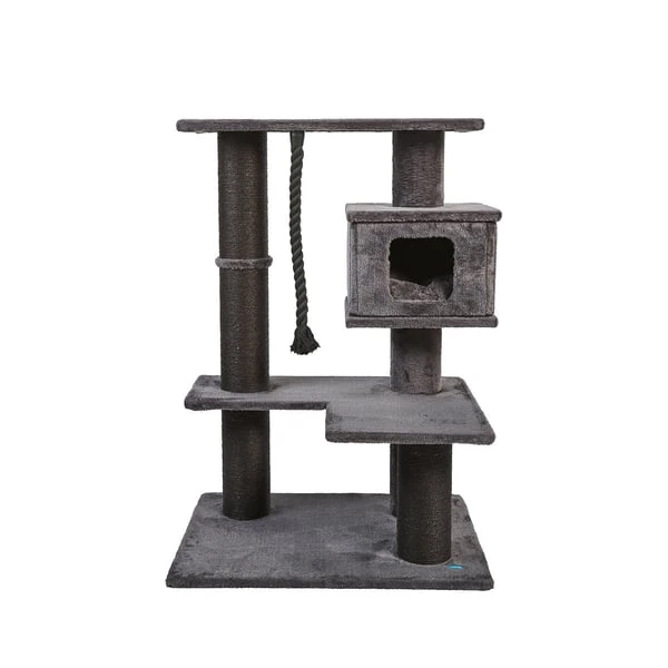 Bei dem modernen ZooRoyal Kratzbaum Lucia in Anthrazit bleiben keine Wünsche deiner Katze offen: Er verfügt über 4 Liegeflächen, eine kuschelige Höhle mit maschinenwaschbarem Kissen, extra dicke Kratzstämme mit viel Kratzfläche aus natürlichem Sisal und einem Seil zum Spielen. Nach dem Krallen wetzen, Klettern und Spielen kann sich deine Katze auf den drei großen Liegeflächen oder in der kuscheligen Höhle entspannt zurückziehen und ausruhen.